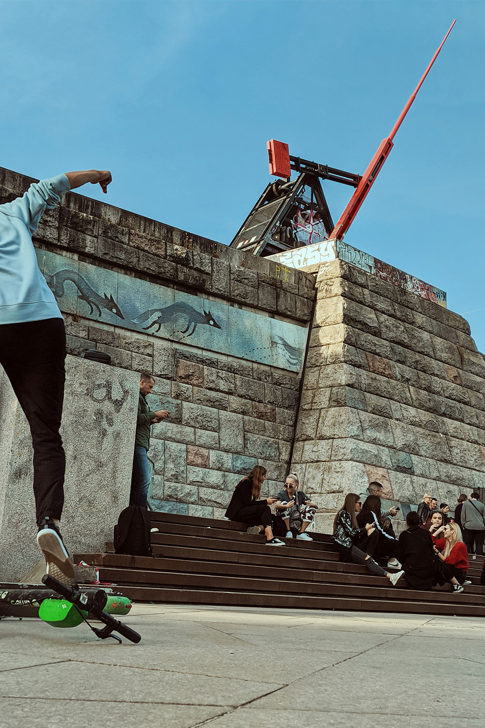RW: Můžu namátkou vybrat pár příkladů z pražské Letné, kde teď žiju. Pro mě osobně představuje skvělou nadčasovou věc geometrická mozaika Zdeňka Sýkory na odvětrávacích komínech Letenského tunelu. Vznikla v roce 1969, ale funguje, jakoby se tam objevila včera. Absolutně definované uměním ve veřejném prostoru je i místo bývalého Stalinova pomníku, kde teď stojí Pražský metronom z roku 91 – kultovní kyvadlo od Vratislava Karla Nováka, které se stalo dokonalým ztělesněním zvláštního mementa svázaného s touhle zemí. Z novějších věcí je to určitě pomník Bike to Heaven z roku 2013 od Krištofa Kintery, což je nenápadná, ale o to působivější věc ve formě pouličního osvětlení, umístěná na místě tragické dopravní nehody. Pokud půjdete kolem a nevíte o něm, dost pravděpodobně si ho ani nevšimnete. O kousek dál u bubenského nádraží už patnáct let stojí objekt Brána nenávratna od Aleše Veselého a označuje místo, odkud odjížděly židovské transporty do ghett v Lodži a Terezíně. Dnes je to takové krysí místo, fakt neutěšené – je tam parkoviště, drátěné ploty, odpadky, ale ta instalace vás stejně dostane a doslova přibije k zemi. A tohle je podle mě přesně to, co s vámi má umění udělat.